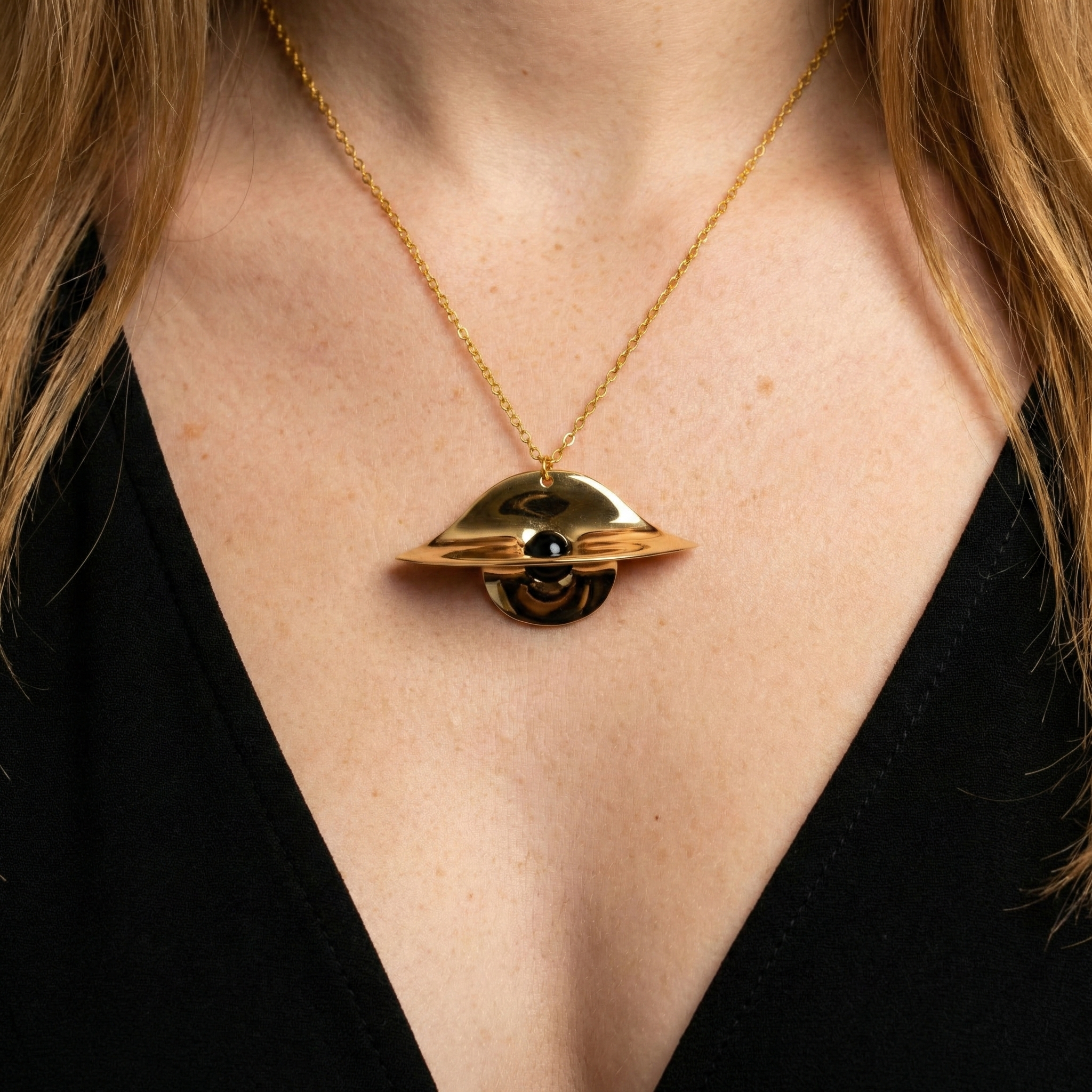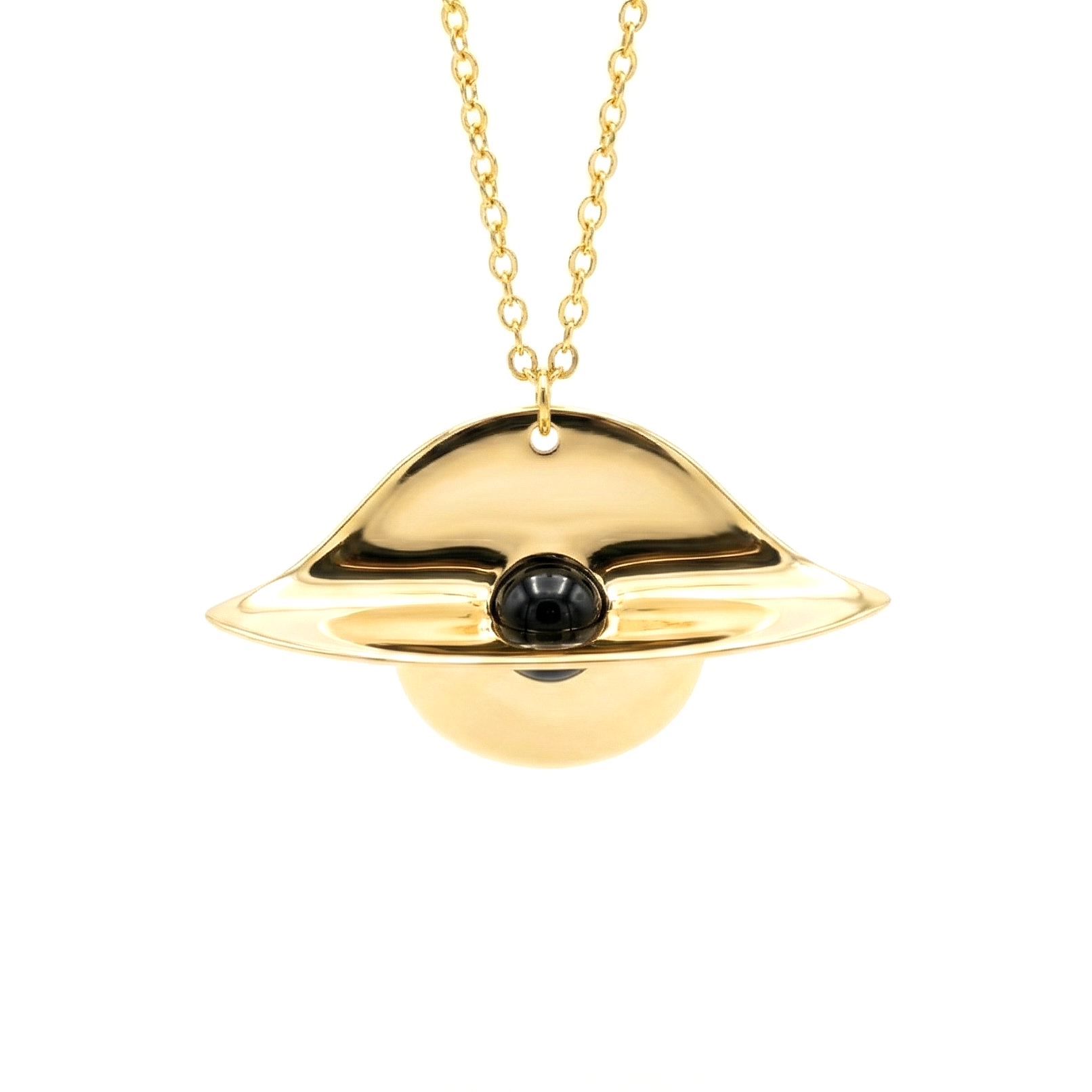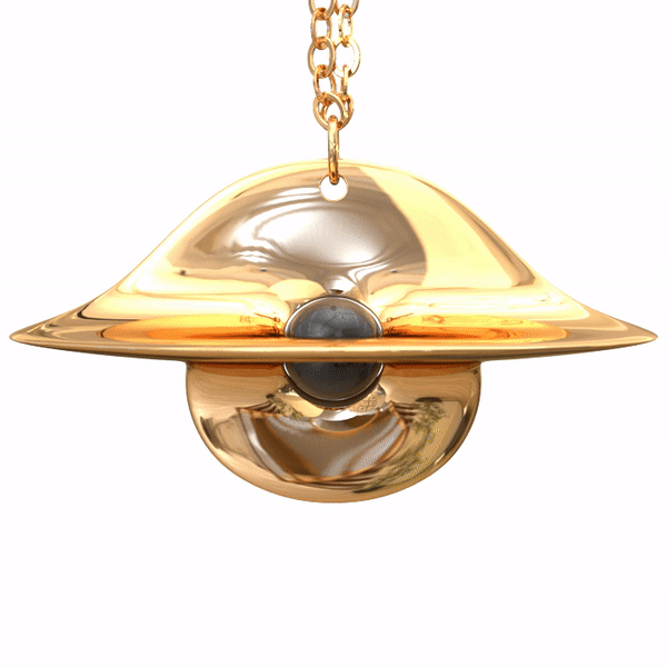 In the grand design of the universe, gravity is the ultimate matchmaker—pulling stars into orbits and hearts into alignment. This pendant, with its warped disc echoing a supermassive black hole, lets you wear that force: the black marble core as the point of no return, where attractions become inevitable. It’s for the woman who knows her presence bends realities.