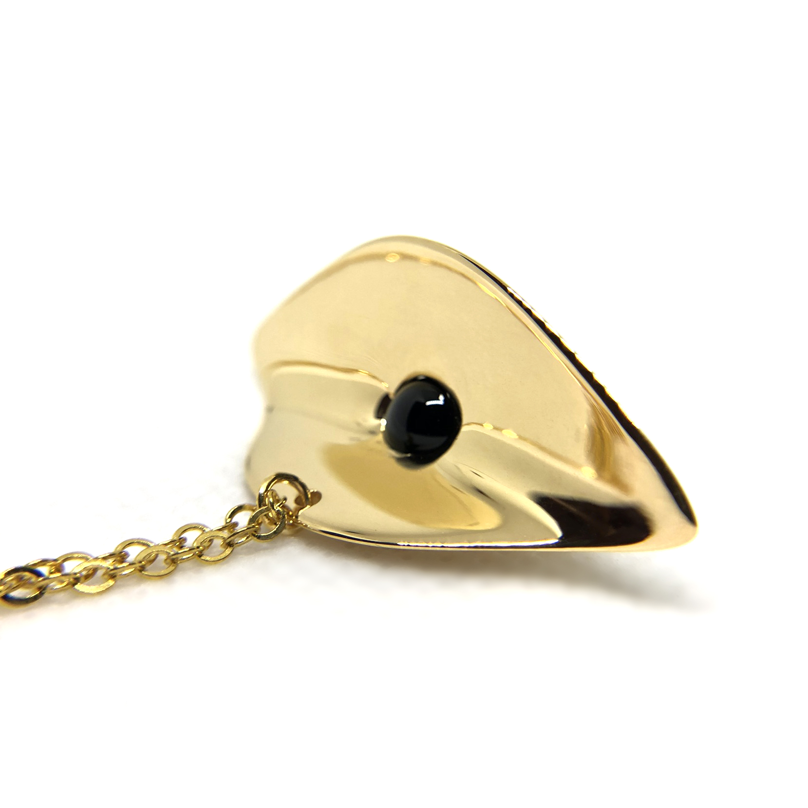 This piece of designer jewelry is available in a variety of polished, plated, or precious metals for a touch of earthly romance amid cosmic pull. The pendant comes with an 18″ dainty style chain in a plated metal matching the color of the pendant.